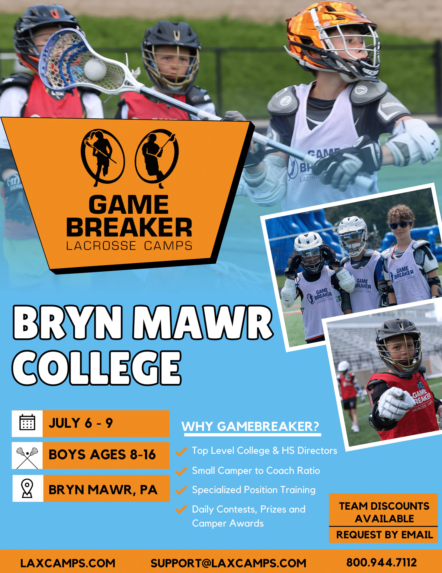 GameBreaker Lacrosse Camp is open to campers ages 8 to 16 of all ability levels.