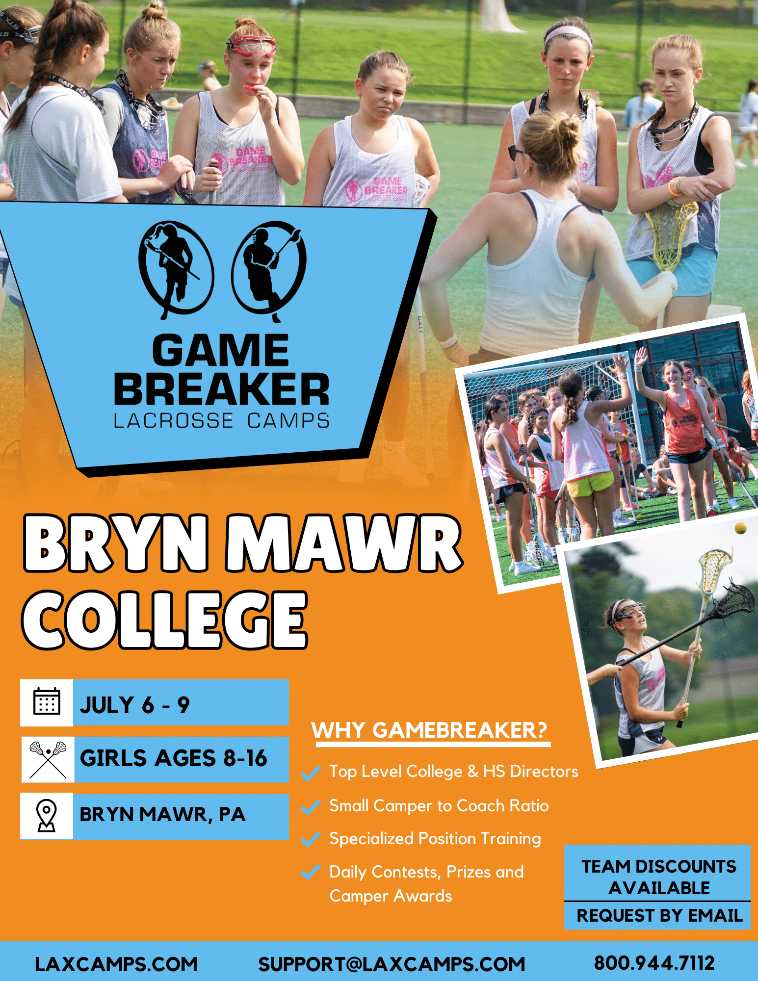GameBreaker Lacrosse Camp is open to campers ages 8 to 16 of all ability levels.