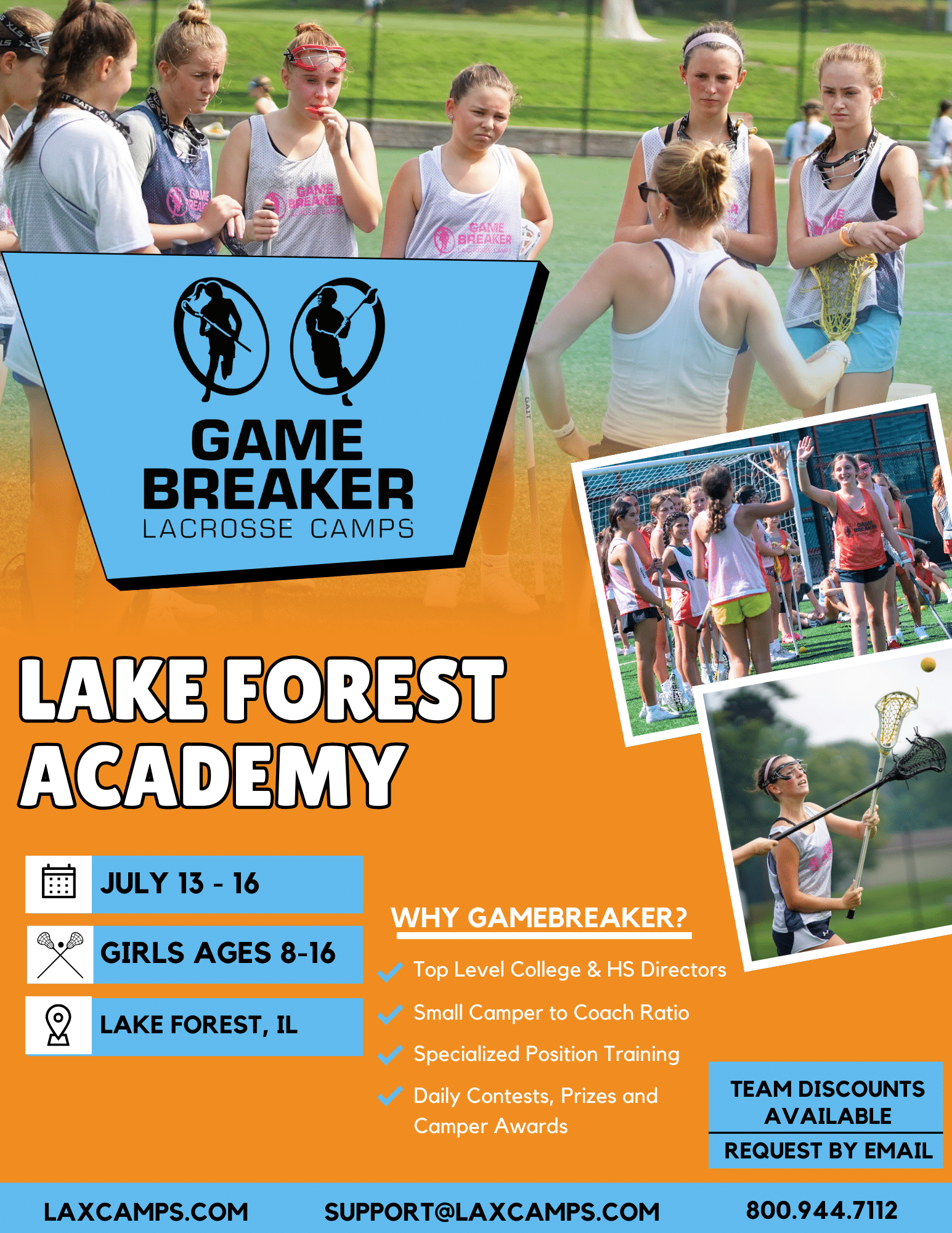 GameBreaker Lacrosse Camp is open to campers ages 8 to 16 of all ability levels.